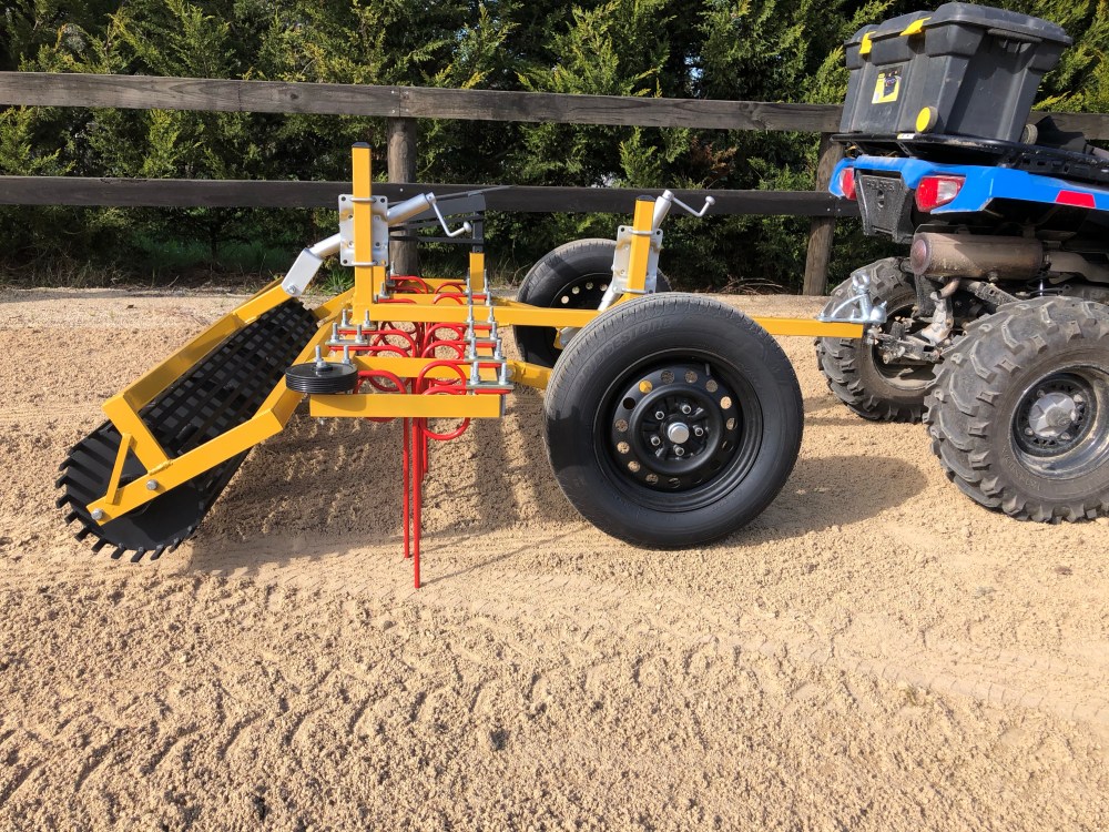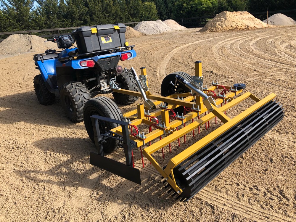 We have a lovely range of arena groomer models in stock, ready for you to take home. Our quality heavy duty arena groomers are engineered to professionally finish fibre, sawdust and sand arena surfaces, so that you can enjoy the perfect ride. Designed to be fully adjustable, they are super easy to use. Additionally, to drag the built up surface away from the outside of the arena, they also feature a hinged side scoop.